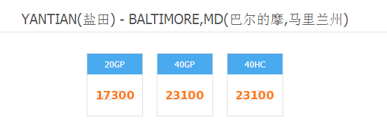 深圳YANTIAN(盐田) - BALTIMORE,MD(巴尔的摩,马里兰州)海运门到门物流费用