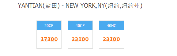 YANTIAN(盐田) - NEW YORK,NY(纽约,纽约州)海运门到门整柜报价