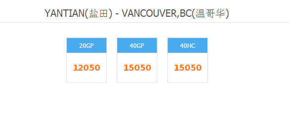 深圳到VANCOUVER,BC(温哥华)海运费多少?