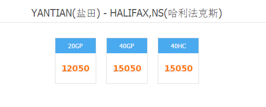 深圳YANTIAN(盐田) - HALIFAX,NS(哈利法克斯)整柜海运费多少?