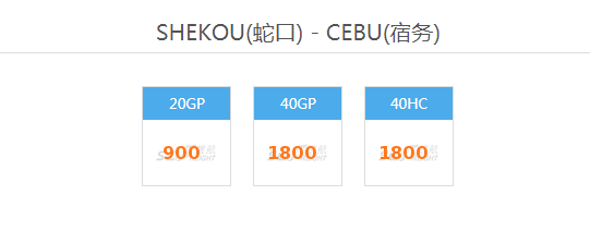 SHEKOU(蛇口) - CEBU(宿务)海运门到门整柜散货报价