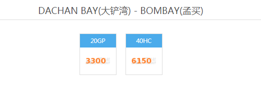 DACHAN BAY(大铲湾)深圳 - BOMBAY(孟买)海运费整柜