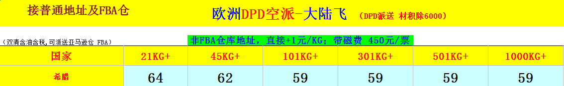 二月,航线调整,暂定四截二飞或一截五飞,来货请提前一天;比利时清关,德国交DPD派送,时效参考范围自发货起6-8天取件! 单件最低:每个单箱13KG起,不足13KG按13KG计费;