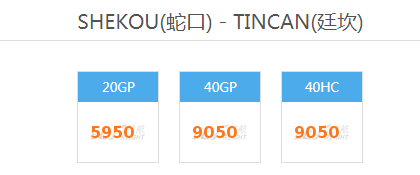 SHEKOU(蛇口) - TINCAN(廷坎)海运费整柜