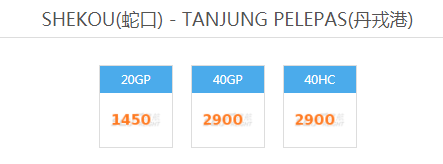 SHEKOU(蛇口) - TANJUNG PELEPAS(丹戎港)海运费最新运价船期