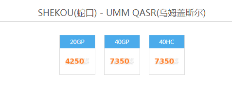 SHEKOU(蛇口) - UMM QASR(乌姆盖斯尔)海运费查询最新运价柜子海运门到门 费用说明:实际费用以最终账单为准.