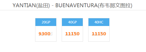 YANTIAN(盐田) - BUENAVENTURA(布韦那文图拉)海运费舱位整柜运费查询