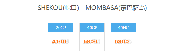 SHEKOU(蛇口) - MOMBASA(蒙巴萨岛)海运费整柜散货查询