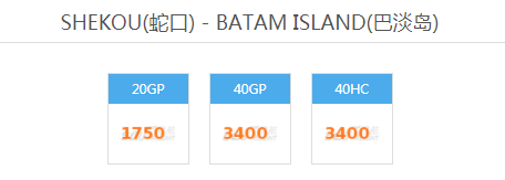 SHEKOU(蛇口) - BATAM ISLAND(巴淡岛)海运费整柜报价门到门