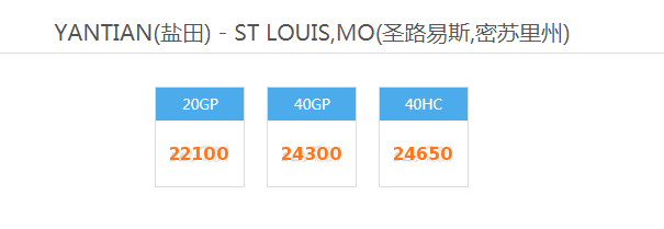 YANTIAN(盐田) - ST LOUIS,MO(圣路易斯,密苏里州)海运费门到门整柜