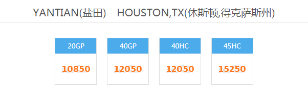 YANTIAN(盐田) - HOUSTON,TX(休斯顿,得克萨斯州)最新运费海运门到门降价了