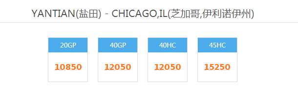 2022最新运价海运门到门YANTIAN(盐田) - CHICAGO,IL(芝加哥,伊利诺伊州)