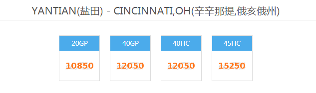 YANTIAN(盐田) - CINCINNATI,OH(辛辛那提,俄亥俄州)2022最新运费降价了海运门到门