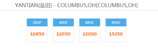 YANTIAN(盐田) - COLUMBUS,OH(COLUMBUS,OH)美国门到门海运费柜子