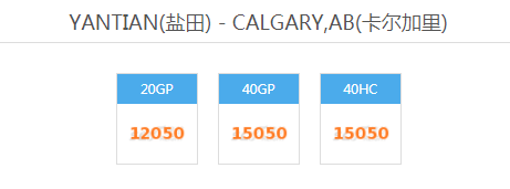 YANTIAN(盐田) - CALGARY,AB(卡尔加里)海运费出口运输订舱服务
