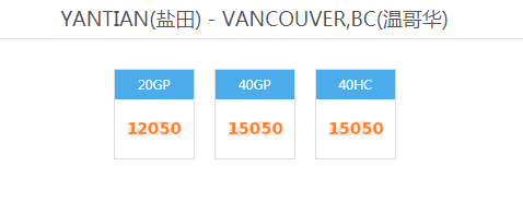 YANTIAN(盐田) - VANCOUVER,BC(温哥华)加拿大海运最新运费2022