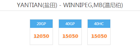 YANTIAN(盐田) - WINNIPEG,MB(温尼伯)加拿大最新海运费2022年