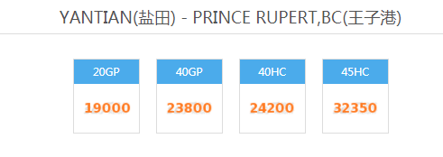 YANTIAN(盐田) - PRINCE RUPERT,BC(王子港)海运费整柜门到门运输服务