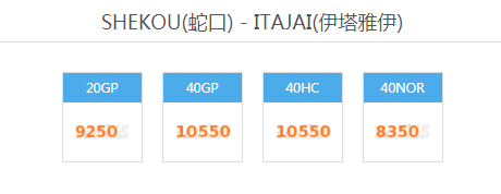 2022年最新运价SHEKOU(蛇口) - ITAJAI(伊塔雅伊)海运费查询