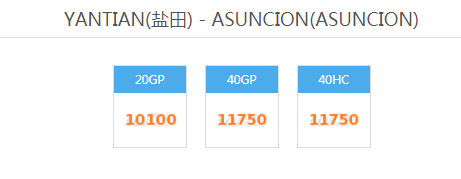 YANTIAN(盐田) - ASUNCION(ASUNCION)海运费订舱门到门整柜