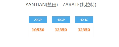 2022年YANTIAN(盐田) - ZARATE(扎拉特)海运费最新订舱整柜
