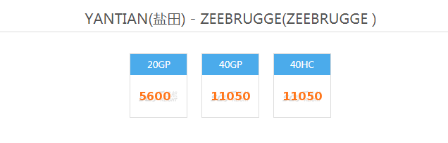 2022最新海运费查询YANTIAN(盐田) - ZEEBRUGGE比利时整柜散货SEA FREIGHT