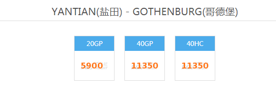 2022最新海运费广州深圳YANTIAN(盐田) - GOTHENBURG(哥德堡)瑞典整柜运费查询