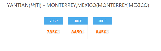 深圳YANTIAN(盐田) - MONTERREY,MEXICO墨西哥海运费查询2022最新运价整柜