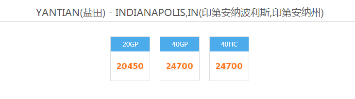 2022最新海运费查询深圳YANTIAN(盐田) - INDIANAPOLIS,IN美国整柜报价散货