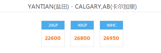 2022最新海运费查询深圳YANTIAN(盐田) - CALGARY,AB(卡尔加里)整柜运价SEA FREIGHT