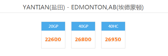 2022最新海运费查询深圳YANTIAN(盐田) - EDMONTON,AB(埃德蒙顿)加拿大整柜SEA FREIGHT