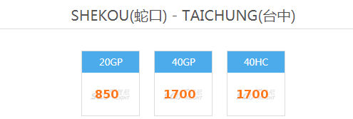 2022最新海运费报价查询深圳SHEKOU(蛇口) - TAICHUNG(台中)台湾整柜