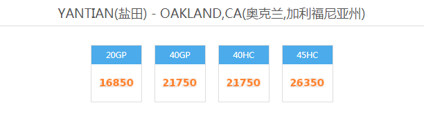 2022.5月最新海运费查询深圳YANTIAN(盐田) - OAKLAND,CA(奥克兰)美国整柜SEA FREIGHT