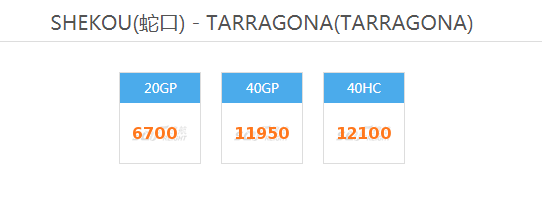 2022最新:海运费查询CHINA深圳SHEKOU(蛇口) - TARRAGONA西班牙整柜报价SEA FREE