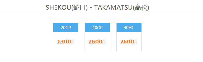 2022最新海运费查询报价CHINA SHENZHEN深圳 - TAKAMATSU(高松)日本整柜子出口物流服务