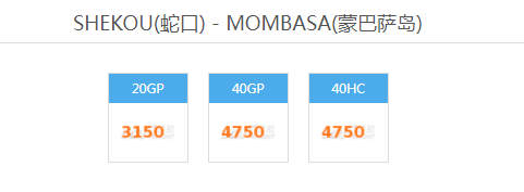 2022.6月最新海运费查询报价CHINA SHENZHEN - MOMBASA(蒙巴萨岛)肯尼亚整柜报价