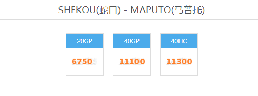 2022.6月最新海运费查询报价CHINA SHENZHEN - SHEKOU(蛇口) - MAPUTO(马普托)莫桑比克整柜报价