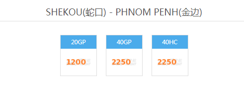 2022年6月最新海运费查询CHINA中国深圳SHENZHEN-PHNOM PENH(金边)柬埔寨报价