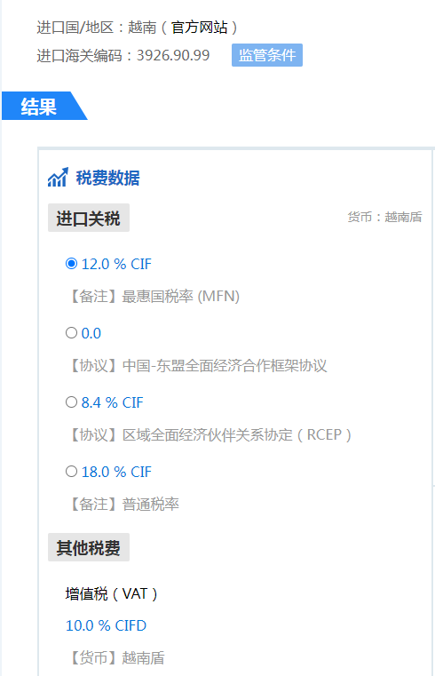 如需了解具体某类商品的关税,建议向越南海关咨询或查询相关的关税税率表。