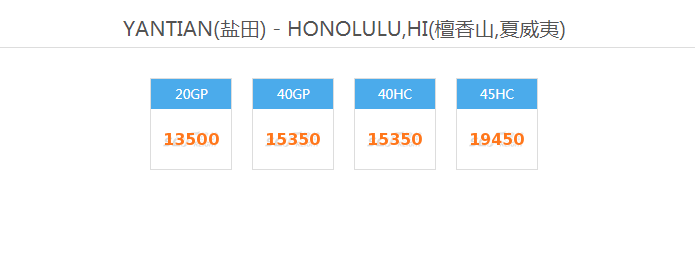 深圳到美国HONOLULU,HI(檀香山,夏威夷)海运费整柜运价格多少?